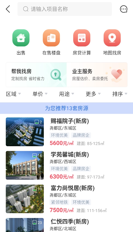 2、选择新房板块,系统会根据预算智能匹配优质房源,展示详细价格和户型信息。
