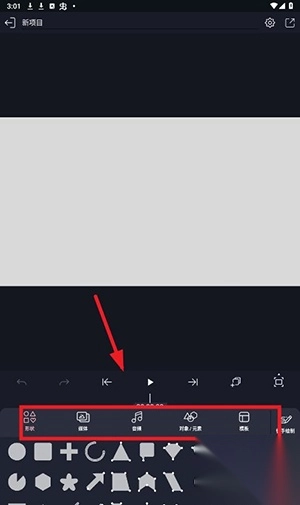 4、选择形状,媒体或者音频,对象,元素,模版导入