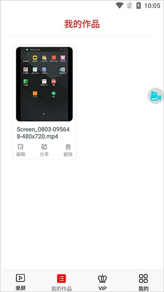 5、录制完成后,在我的作品中可以看到,支持编辑、分享;