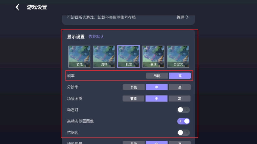2. 进入设置,向下滑动页面,找到显示设置,接着滑动帧率开关就行。