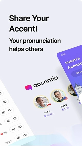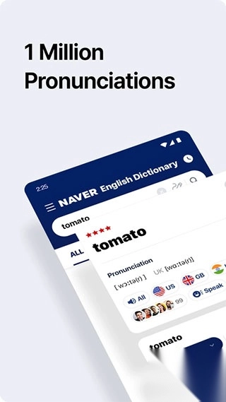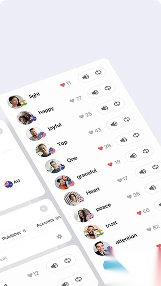 1000000个发音:美国、韩国、英国、澳大利亚、印度口音等,点击就可以边听边学。