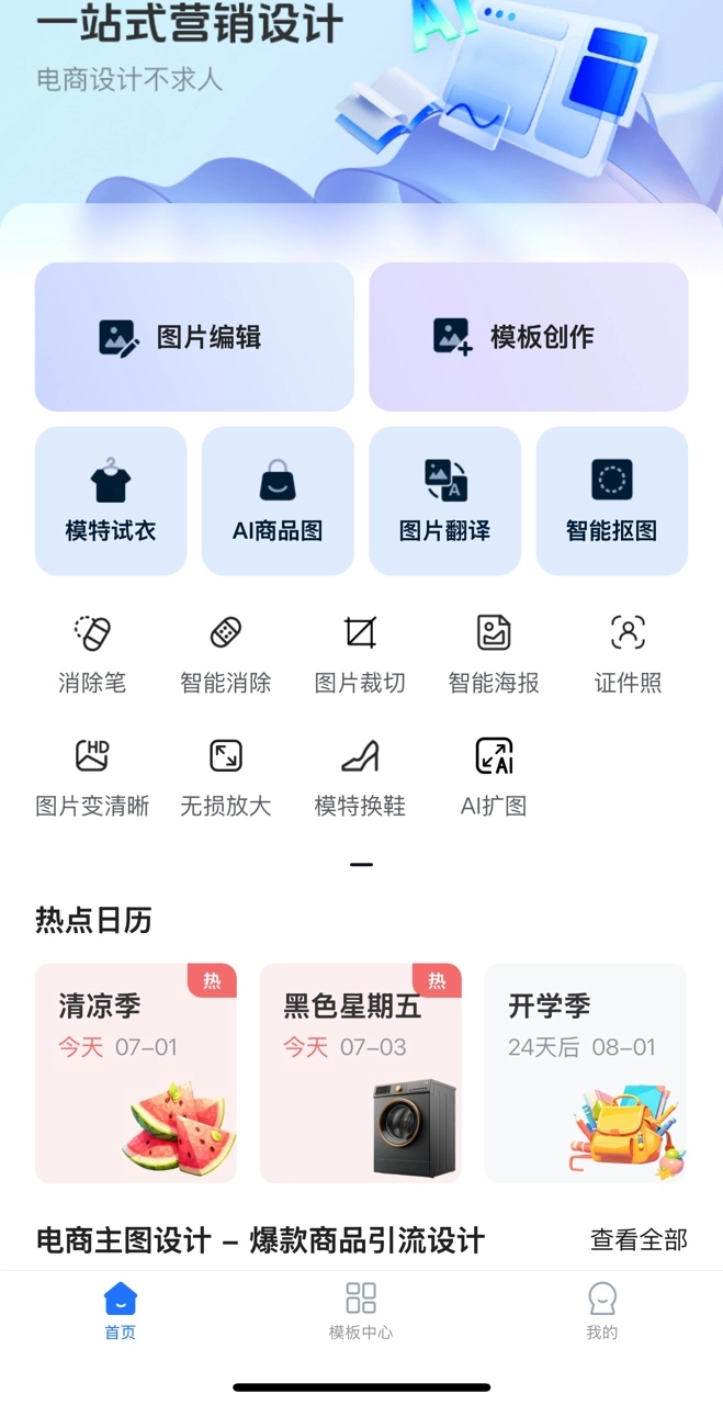 3、与京东、拼多多、淘宝、天猫、抖店、快手、1688等主流电商平台全方位适配,保障设计成果可无阻碍地应用于店铺装修及商品详情页。