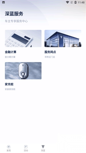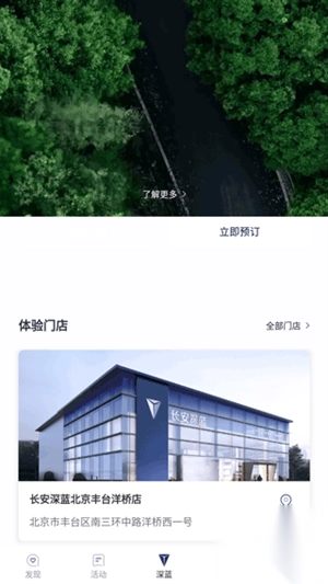4、在深蓝板块中,可以进行订购车辆和查找附近的体验门店功能