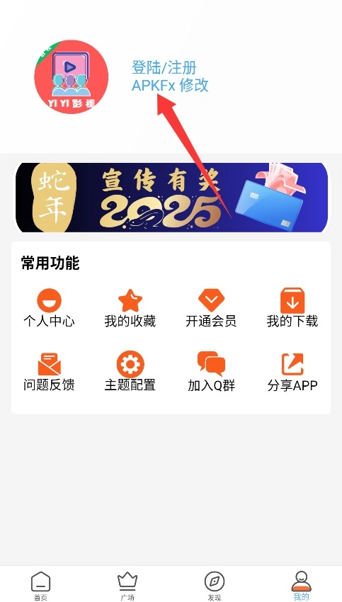 1、首次使用YIYI影视需进入个人中心页面,点击左上角登录/注册按钮跳转至账号创建界面。