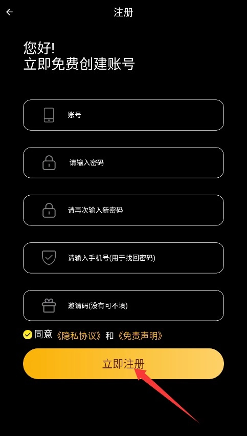 2、在注册页面填写用户名、设置密码并绑定手机号,勾选同意条款后点击注册按钮完成账号开通。