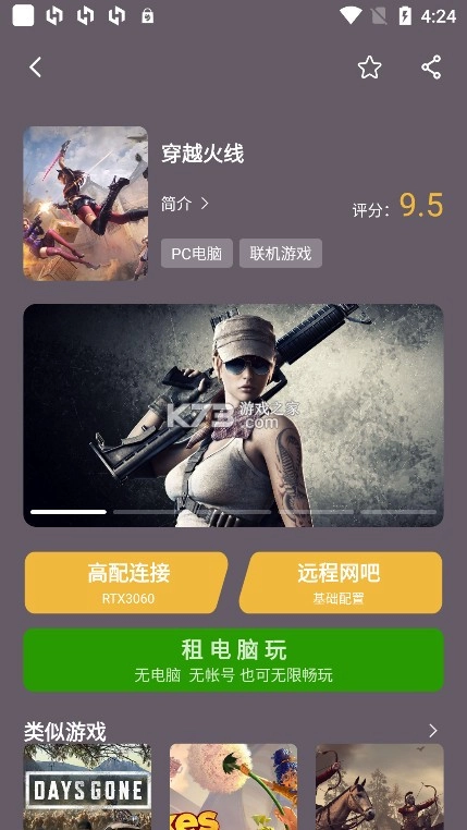主打云游戏的软件,里面容纳的游戏过万种,云化后的游戏接近千种,覆盖各类型的3A端游和各类大型手游,解决安装游戏占用用户内存的烦恼,让玩家可以畅快进行玩耍,内有开黑功能模块,让玩家可以寻找志同道合的好友。