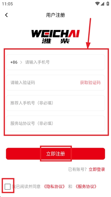 当您进入用户注册界面,依次填入手机号、验证码等相关信息,接着勾选“我已阅读并同意《隐私协议》和《服务协议》”,最后点击“立即注册”按钮,就能完成注册操作。