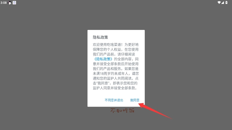 1、首次打开APP需要阅读并同意用户协议,点击确认按钮进入主界面。