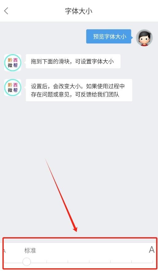 3、这时,底部会出现白色小圆块,左右滑动这些小圆块,就能轻松控制字体大小。