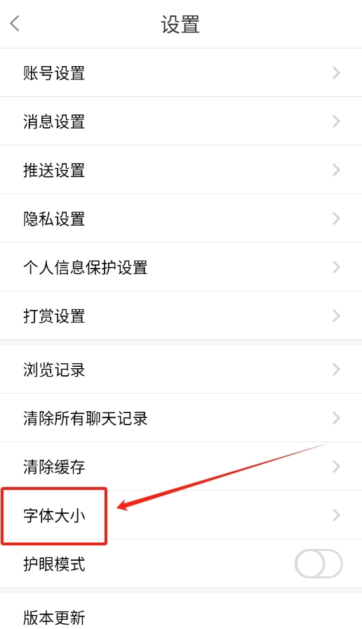 2、在设置页面里,找到 “字体大小” 这一选项,接着点击它。