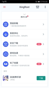KingRoot手机版,一款免费的手机root工具,适配多种机型系统,能迅速获取手机root权限,还可卸载手机预装应用。它拥有超高的root成功率,没有任何广告弹窗,界面也已全面汉化。要是有需求,就快来下载KingRoot手机版吧!