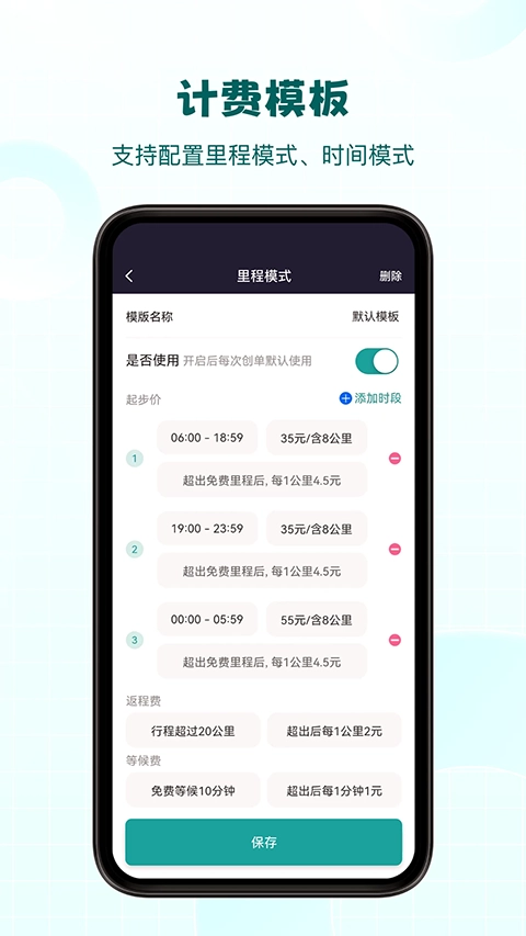 3、自定义计费模板:里程费、等候费、返程费、高速费样样都有。