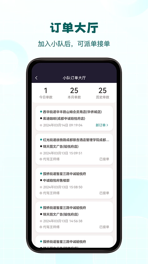 3、在此处,用户能够通过一键创建订单开启服务,迅速为车主提供代驾。