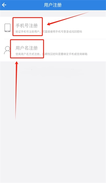 3、注册方式有两种,其一可选择手机号注册,依照提示进行操作;其二能用用户名注册,填妥相关信息以完成注册流程。