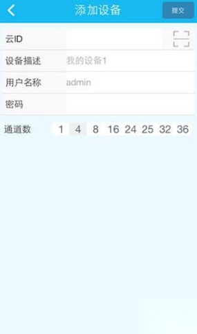 点击右上角+号,选择云ID,填写录像机连接信息。如下图所示: