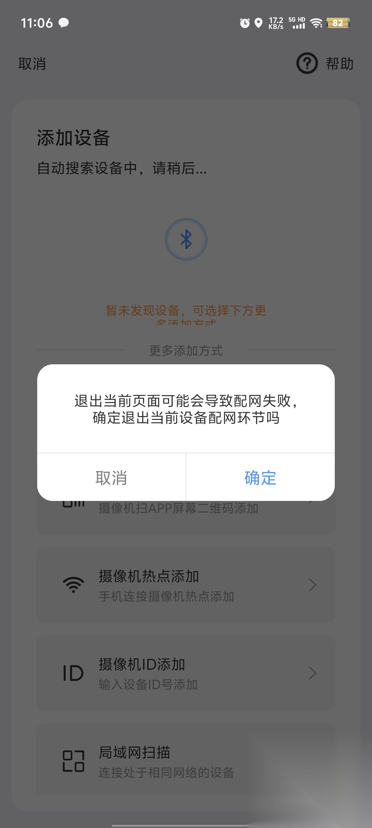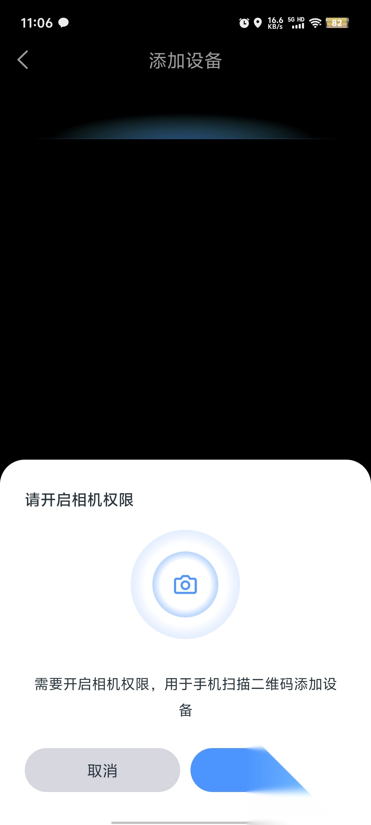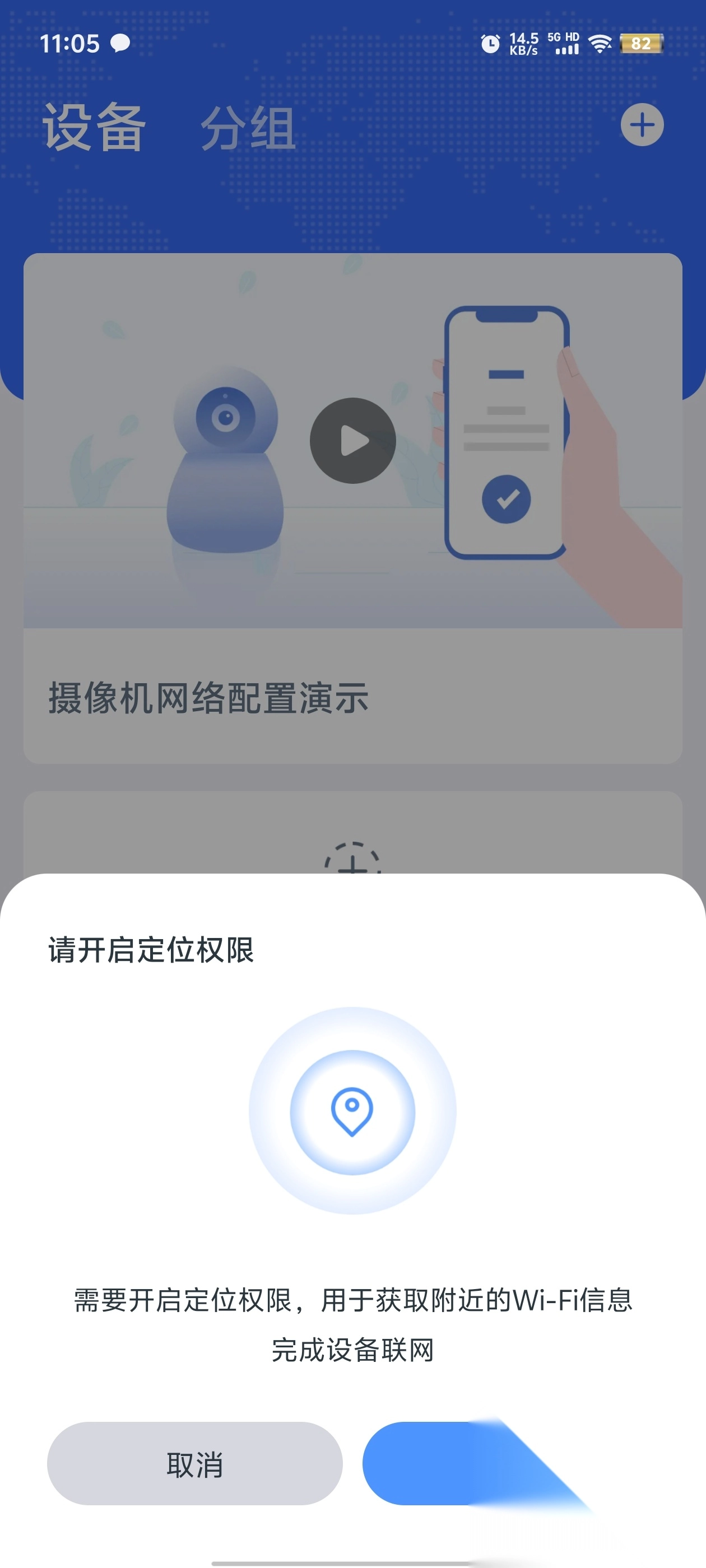 2.在设备界面点击添加摄像机,需要开启定位等权限。