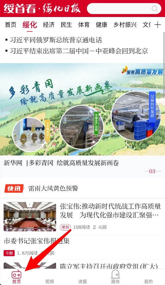 1、点击首页按钮可返回主界面,快速查看最新资讯和重要新闻信息,内容每日实时更新。