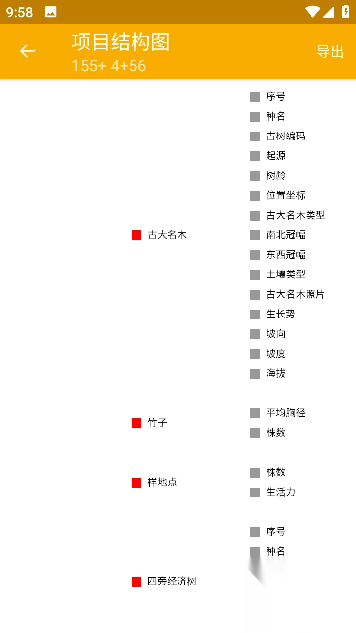 数图借助组织“实体”与“属性”,构建树形结构的项目模板以实现创建。其中,“实体”指的是调查对象(例如一棵树、一个人),“属性”则是用于描述实体的数据,同时也是基本采集项,实体由属性构成,而模板树状图会在“模板图示”页面进行展示。