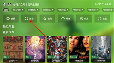 3、点击箭头所指向的搜索框,输入关键词,通过精准检索找到自己喜欢观看的电视频道。