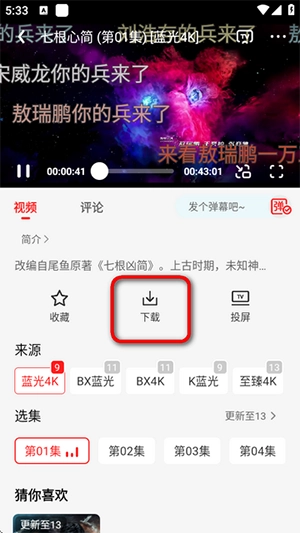 1. 进入想要下载视频的播放页面,点击页面下方的“下载”按键。