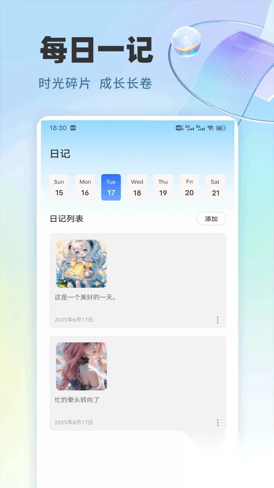 3、界面简洁美观,操作简单易用,没有复杂的设置和操作。用户可以在日记中插入图片或视频。