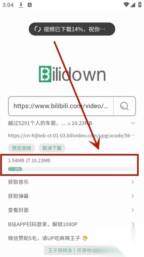 1.下载安装并打开bilidown app,直接在