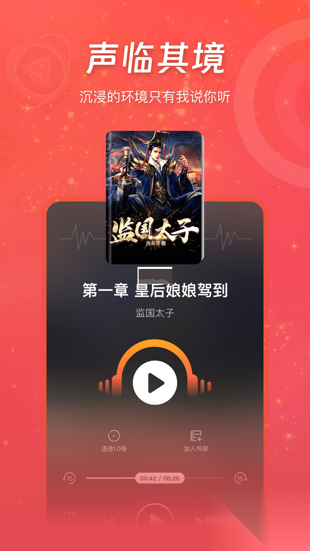 听书模式,解放你疲惫的眼睛,满足你挑剔的耳朵;
