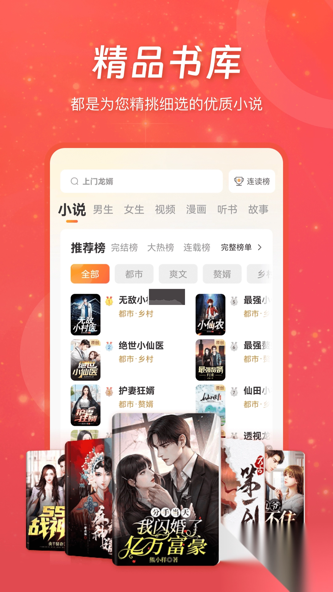 【品类丰富】各类热门书籍随意畅览,玄幻、言情、仙侠、都市、职场、历史、军事、科幻、二次元等应有尽有,满足你的一切阅读需求~