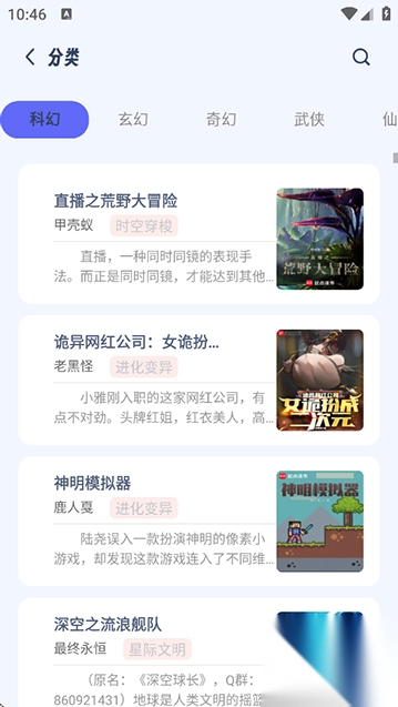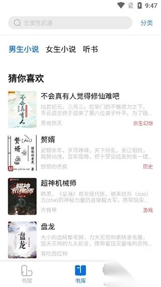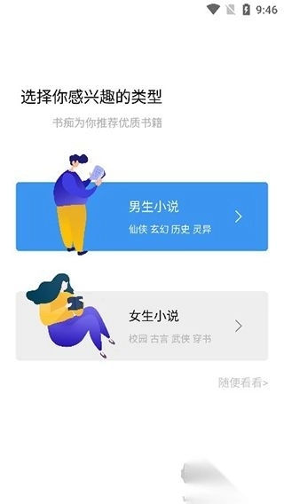 1、在本站下载并安装起源书阁app。进入软件后,要挑选自己感兴趣、喜欢的类型。