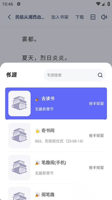4、软件还拥有超级丰富的书源,可以选择一个书源来阅读;