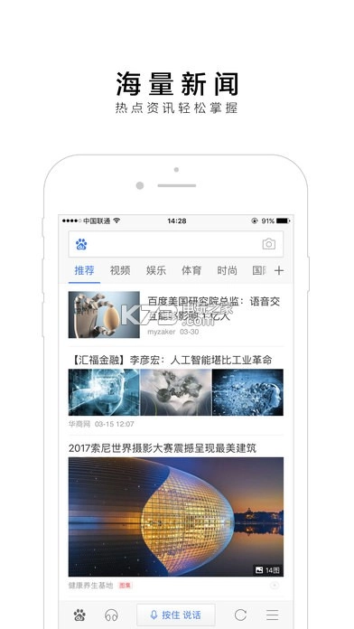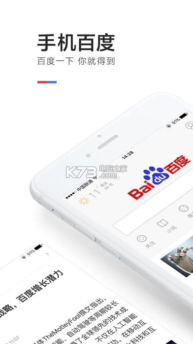 手机百度每日活跃用户数超一亿,位居国内活跃用户量排名前三的APP之列。它凭借百度家族历经多年深度耕耘所积累的独特资源,以及强大的技术优势,革新了传统人们“搜索”资讯的方式。海量的新闻热点头条为您进行个性化推荐,智能算法一键触达,让您的生活变得简单又高效。