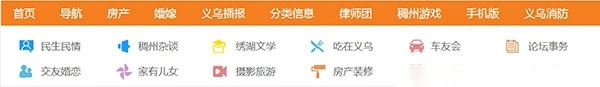 2、主要有:民生民情、法律咨询、爱心公益、吃在义乌、旅游户外、健康咨询你、娱乐、体育、摄影、男孩女孩、交友征婚、三十而立、亲子乐园、教育培训、喜庆婚嫁、车友会、房产装修、投资理财、时尚购物、商业资讯、电商帮会等栏目,供用户选择浏览