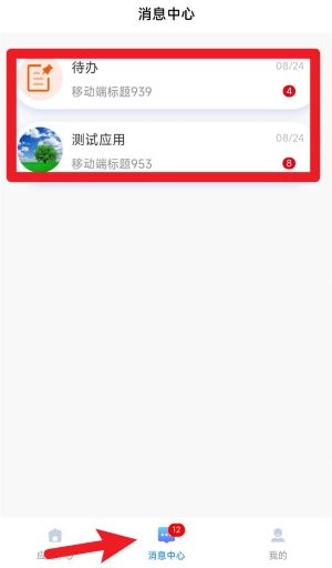 3、于消息中心界面,能够依据应用分类,对不同模块的通知进行查看,像待办事项以及测试应用的消息提示便是如此。