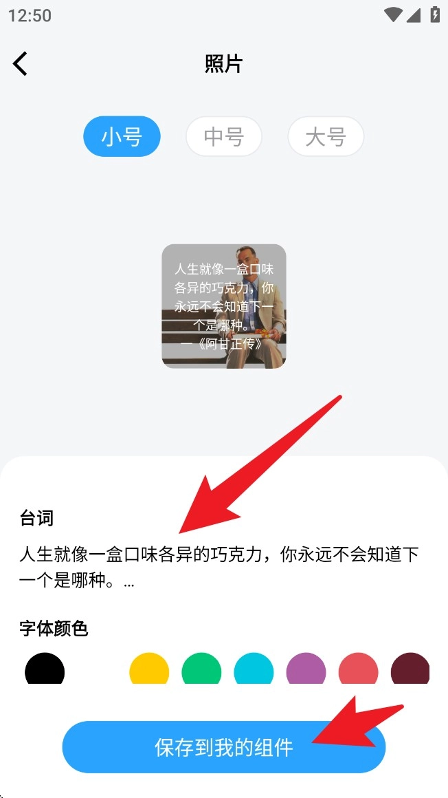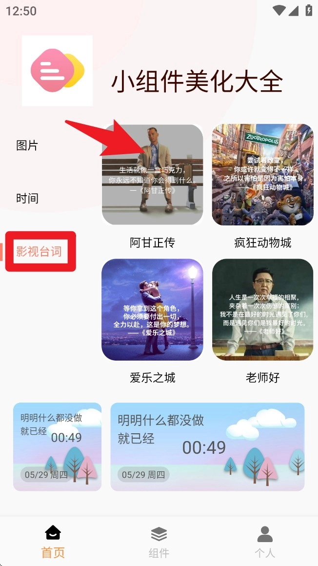 4. 轻点“影视台词”模块,挑选心仪的电影画面与文字,迅速生成带有台词的个性组件。