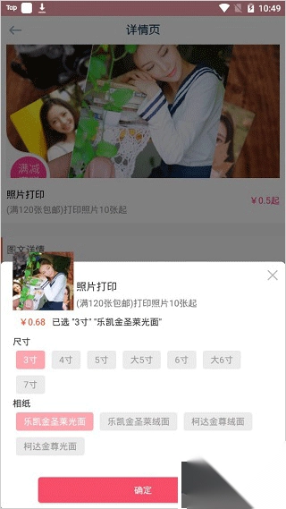 在此处挑选尺寸规格、相纸材质,点击确认,随后下单付款,安心等待收货即可!