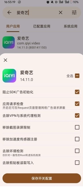 开启AdClose模块,在应用列表中进行选择并点击,进而启用对应的Hook功能。
