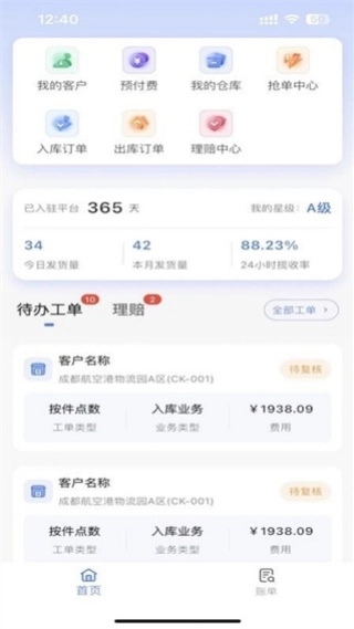 3、用户在线更好的可以管理个人客户,所有的入库订单,抢单中心数据都有。