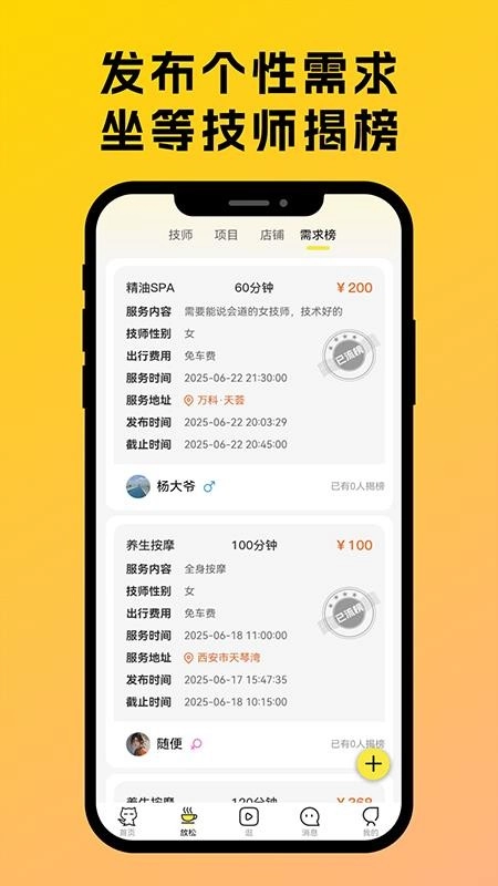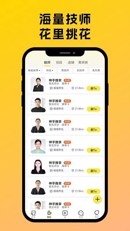 可以获取同城的按摩技师,让你可以选择合适的技师快速下单;