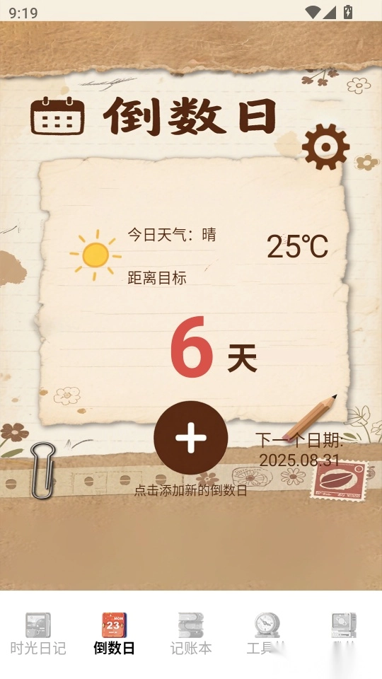 2. 接着在首页界面底部的菜单栏里,寻找到“倒数日”功能模块并进入。