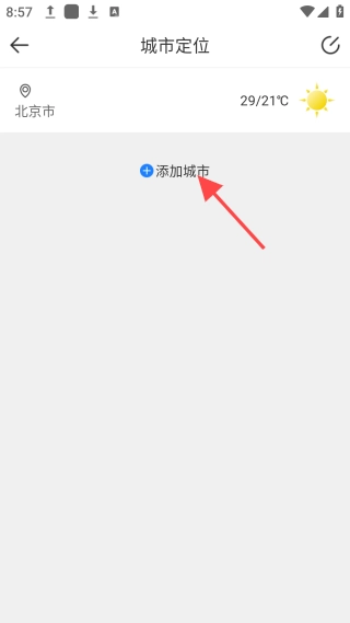 3、打开【城市定位】界面,点击【添加城市】图标。