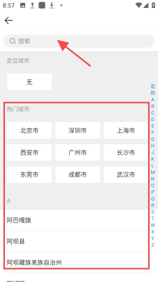 4、浏览热门推荐城市,或搜索框输入心仪城市添加即可。