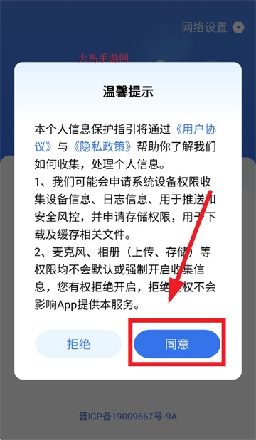 首先下载并安装掌上网格app,安装完成后打开该应用,进入应用时需先同意温馨提示。
