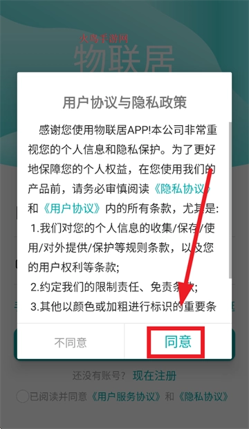 请下载并安装物联居app,安装完成后打开该应用,进入应用时首先需同意用户协议与隐私政策。