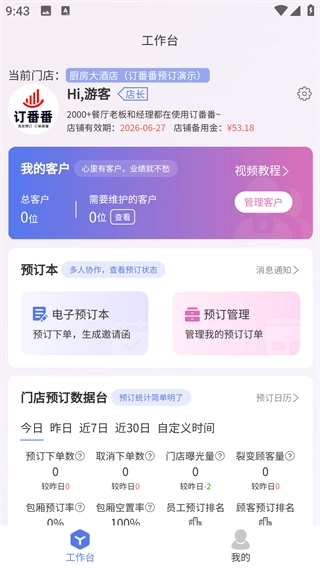 3、在首页可以看到最新的预定数据,包含了当日和近7日以及30日等数据;
