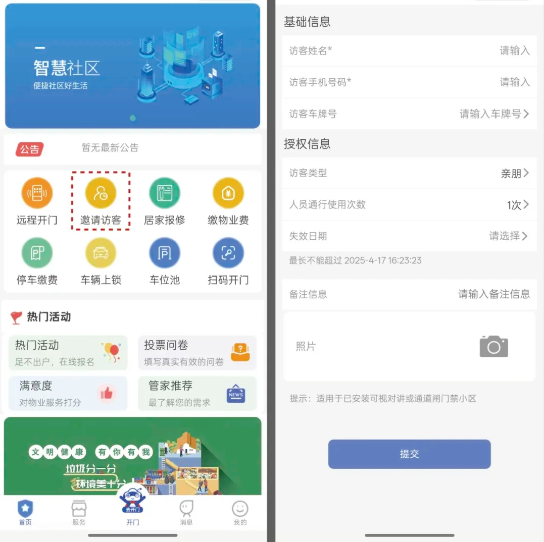 如到访时间不定,还可在首页——邀请访客界面上传照片录入一次性人脸信息,让其自行识别人脸通行。