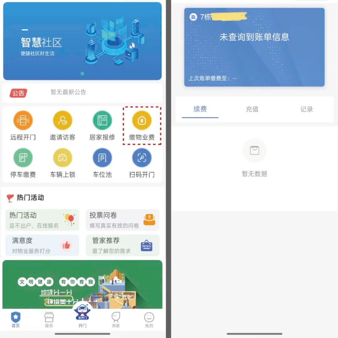 只需点击首页的“缴物业费”选项,即可轻松实现线上自助缴费。不仅如此,您还能点击缴费账单,清晰查看具体的费用明细以及缴费记录等信息,便捷程度超乎想象!