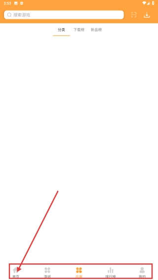 1、打开游戏应用商店,点击底部首页选项,进入首页界面。
