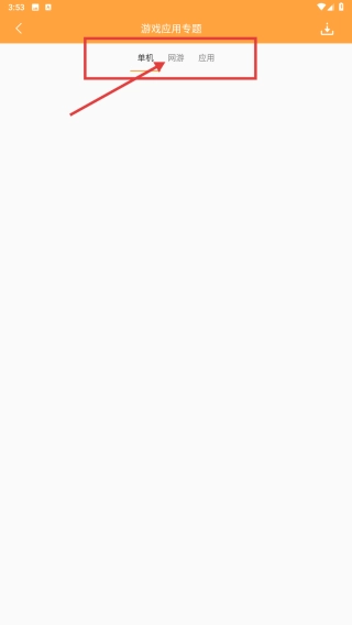 3、在游戏应用专题页面,点击网游分类,查看网游相关专题内容。