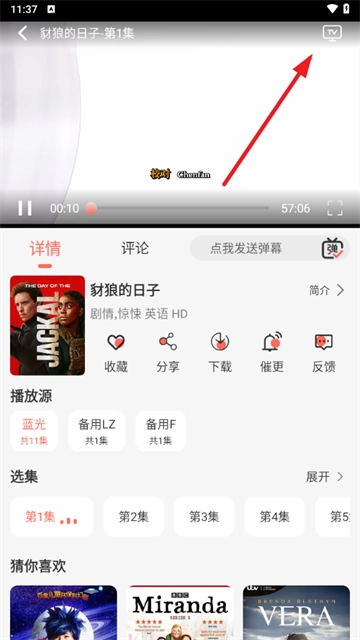 3、要是觉得手机屏幕尺寸过小,还能点击右上角,将内容投屏到电视上观看。