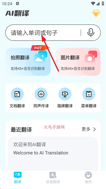 1、打开APP,在这里输入中文或英文,点击翻译。